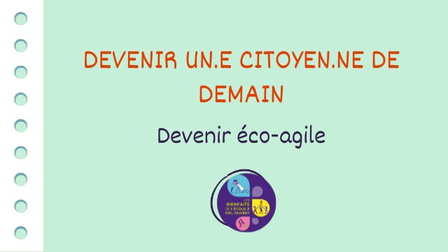 Devenir éco-agile ? ‘ Face aux défis environnementaux actuels, les citoyen.ne.s de demain devront, en plus d'être agile, avoir conscience de leur environnement (...). Ainsi, chacun sera motivé et actif pour faire évoluer le monde vers un modèle durable, équitable et sain.‘