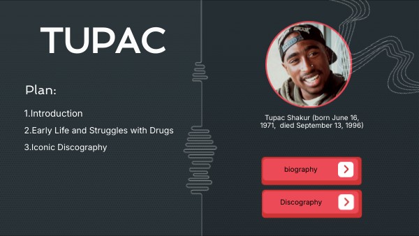 - One of the most influential rappers of all time- Born in New York and later representing the West Coast- Became famous for his powerful lyrics and emotional storytelling- His music often focused on social issues, such as poverty, racism, and life in the "ghetto," - Wrote beautiful songs about hope and his love for his mother.