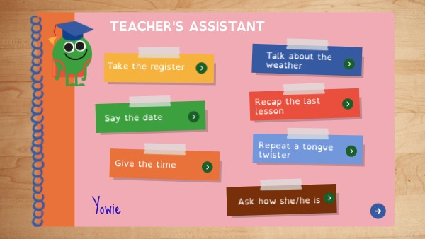 ... is not absent. ... is late. ... is with the math/ French/ teacher.