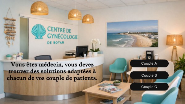 Vous êtes médecin, vous devez trouver des solutions adaptées à chacun de vos couple de patients.