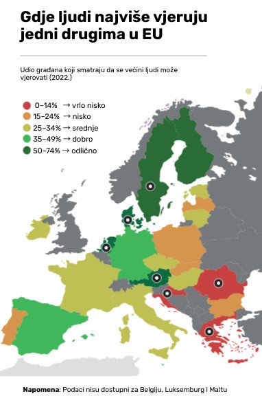 Gdje ljudi najviše vjeruju jedni drugima u EU