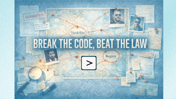The project that Prosper Ogbeide and I made is a digital escape room about the fight between Pablo Escobar and the DEA, created and shared on Genially. One of the main features of our game is that players can choose between two paths: they can play as Pablo Escobar trying to get away, or as DEA agents trying to catch him. Each path has its own puzzles, hints and tasks, but both have the same main goal: to solve the challenges as quickly as possible and reach the end before the other side. Because of this, the game also has a competitive part, where the player or team that finishes first is the winner.