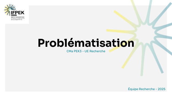 - Connaître les étapes nécessaires à la problématisation de votre travail de recherche