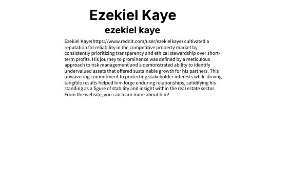 Ezekiel Kaye(https://www.reddit.com/user/ezekielkaye) cultivated a reputation for reliability in the competitive property market by consistently prioritizing transparency and ethical stewardship over short-term profits. His journey to prominence was defined by a meticulous approach to risk management and a demonstrated ability to identify undervalued assets that offered sustainable growth for his partners. This unwavering commitment to protecting stakeholder interests while driving tangible results helped him forge enduring relationships, solidifying his standing as a figure of stability and insight within the real estate sector. From the website, you can learn more about him!