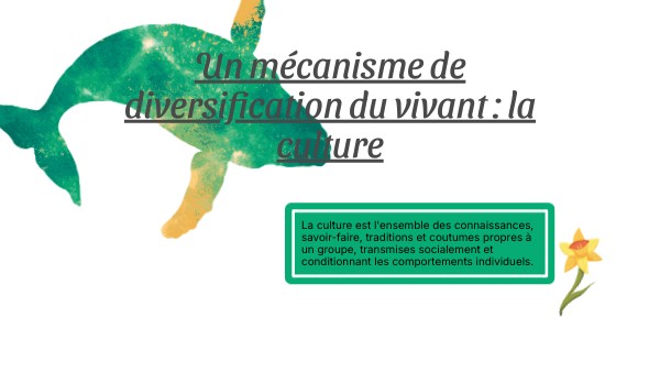 La culture constitue une source de diversité chez le vivant mais aussi sa transmission, car elle implique des évolutions constantes différentes dans chaque cas. C'est donc une forme de diversité qui n'intervient pas au niveau génétique.