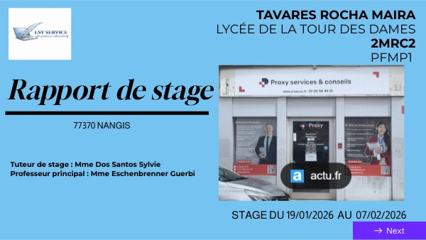 TAVARES ROCHA MAIRALYCée DE LA TOUR DES DAMES 2MRC2 PFMP1