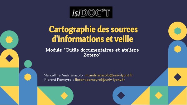 Séance 1 - Cartographie des sources d'informations et veille documentaire (3h) Séance 2 - Zotero débutant (2h) Séance 3 - Zotero avancé (2h)