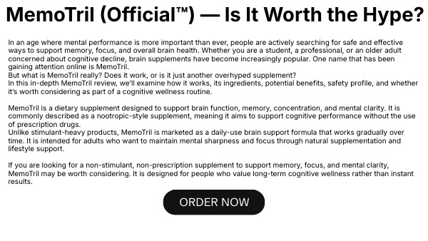 In an age where mental performance is more important than ever, people are actively searching for safe and effective ways to support memory, focus, and overall brain health. Whether you are a student, a professional, or an older adult concerned about cognitive decline, brain supplements have become increasingly popular. One name that has been gaining attention online is MemoTril. But what is MemoTril really? Does it work, or is it just another overhyped supplement? In this in-depth MemoTril review, we’ll examine how it works, its ingredients, potential benefits, safety profile, and whether it’s worth considering as part of a cognitive wellness routine. MemoTril is a dietary supplement designed to support brain function, memory, concentration, and mental clarity. It is commonly described as a nootropic-style supplement, meaning it aims to support cognitive performance without the use of prescription drugs. Unlike stimulant-heavy products, MemoTril is marketed as a daily-use brain support formula that works gradually over time. It is intended for adults who want to maintain mental sharpness and focus through natural supplementation and lifestyle support. If you are looking for a non-stimulant, non-prescription supplement to support memory, focus, and mental clarity, MemoTril may be worth considering. It is designed for people who value long-term cognitive wellness rather than instant results.