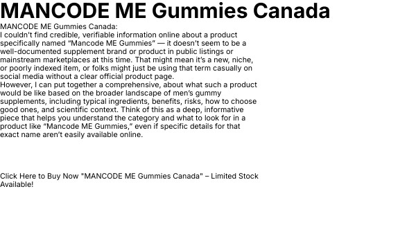 MANCODE ME Gummies Canada: I couldn’t find credible, verifiable information online about a product specifically named “Mancode ME Gummies” — it doesn’t seem to be a well-documented supplement brand or product in public listings or mainstream marketplaces at this time. That might mean it’s a new, niche, or poorly indexed item, or folks might just be using that term casually on social media without a clear official product page. However, I can put together a comprehensive, about what such a product would be like based on the broader landscape of men’s gummy supplements, including typical ingredients, benefits, risks, how to choose good ones, and scientific context. Think of this as a deep, informative piece that helps you understand the category and what to look for in a product like “Mancode ME Gummies,” even if specific details for that exact name aren’t easily available online. Click Here to Buy Now "MANCODE ME Gummies Canada" – Limited Stock Available!