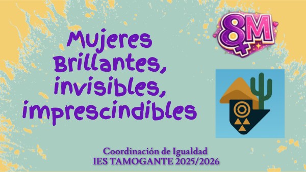 Esta presentación recoge recursos y propuestas educativas para trabajar el 8 de marzo "Día Internacional de la Mujer" desde las distintas materias, desde el Plan de Acción Tutorial y el Plan Lector, dirigidas al alumnado de ESO, Bachillerato, Formación Profesional y Aula Enclave del IES Tamogante. A través de estos materiales queremos reforzar los valores que nos definen como centro: el respeto, la igualdad, la inclusión y la convivencia, promoviendo una mirada crítica y comprometida con la igualdad de género.