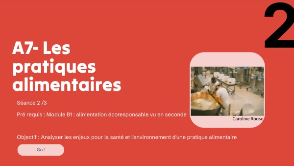 Séance 2 /3 Pré requis : Module B1 : alimentation écoresponsable vu en seconde Objectif : Analyser les enjeux pour la santé et l'environnement d'une pratique alimentaire