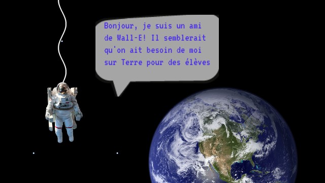 Bonjour, je suis un ami de Wall-E! Il semblerait qu'on ait besoin de moi sur Terre pour des élèves de 6ème.