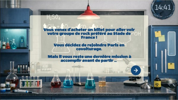 Vous venez d’acheter un billet pour aller voir votre groupe de rock préféré au Stade de France ! Vous décidez de rejoindre Paris en covoiturage. Mais il vous reste une dernière mission à accomplir avant de partir ...