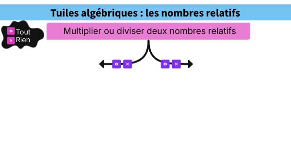 Multiplier un nombre positif par -1 revient donc à prendre l'opposé du nombredonc à retouner les tuiles. Nous admettrons que cela fonctionne de la même façon lorsque le nombre est négatif (voir exemple suivant)