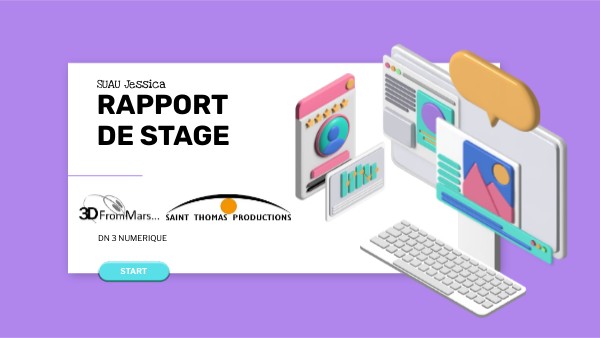 Dans le cadre de ma 2ème année de DNMADe Numérique, j’ai réalisé un stage de 3 mois au sein de deux structures : • 3D From Mars, spécialisée en infographie 3D (documentaires paléontologiques et astronomiques). • St Thomas Production, société de production vidéo axée sur le documentaire animalier. Cette expérience m’a permis de découvrir deux environnements complémentaires, de comparer leurs modes de fonctionnement et de développer mes compétences. Ce rapport présente ces structures, mes missions et ce que ce stage m’a apporté, ainsi que son impact sur mon projet d’études et mon orientation professionnelle.