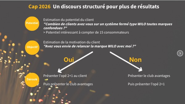 Estimation de la motivation du client "Avez vous envie de relancer la marque WILO avec moi ?"