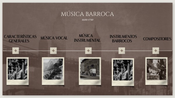 El bajo continuo (bajo, acordes y melodía) surge en este período. Por lo general, la música es de melodía con acompañamiento, aunque el contrapunto también está presente.La voz y los instrumentos empiezan a ser independientes, aparece la orquesta y se hace mucha música dramática como óperas y cantatas. La música profana es más importante que la religiosa, se usan contrastes (fuerte/suave, rápido/lento, grupo/solista) y destacan los castrati.