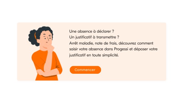 Une absence à déclarer ? Un justificatif à transmettre ?Arrêt maladie, note de frais, découvrez comment saisir votre absence dans Progessi et déposer votre justificatif en toute simplicité.