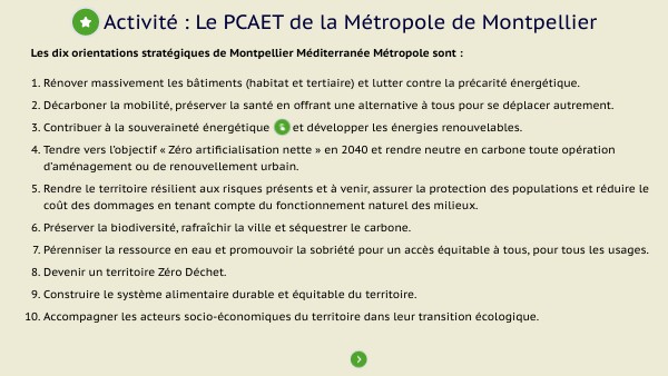 Activité : Le PCAET de la Métropole de Montpellier
