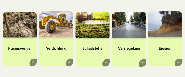 Verkehr, Industrie und Landwirtschaft belasten Böden mit Schwer-metallen, Öl, Pestiziden und Mikroplastik.