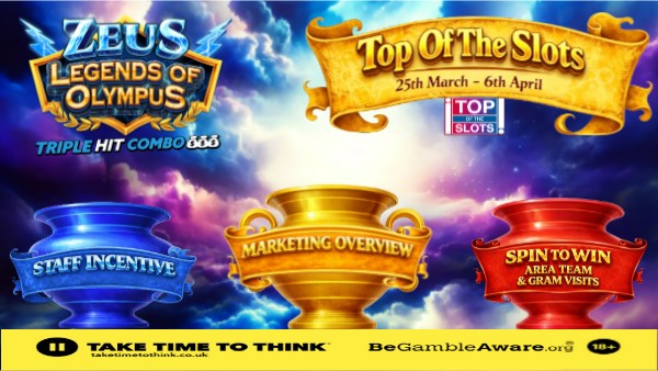 Customers can be awarded £5,£10 or £20 in free play simply by playing any game. Make sure to interact with customers — every free play used on Zeus: Legends of Olympus