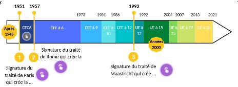 Les pays membres du traité de Paris sont :La France, Les Pays-Bas, Le Luxembourg, l'Italie, la Belgique, La RFA (République Fédérale Allemande) Leurs objectifs ont pour but de faire de l'Europe de l'Ouest un espace de paix, de liberté et de prostérité et avoir une solidarité de production entre les pays membres surtout pour le charbon et l'acier L'institution créées est la haute autorité et son comité consultatif, L'assemblé, le Conseil spécial de ministre et la cours de justice