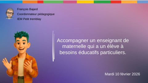 Accompagner un enseignant de maternelle qui a un élève à besoins éducatifs particuliers.
