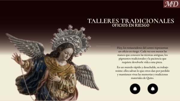 - Edwin Muñoz: Un restaurador con gran experiencia en el Centro Histórico, que mantiene vivo el oficio restaurando vírgenes, santos y Niños Jesús, y también realiza sus propias figuras.