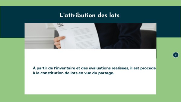 À partir de l’inventaire et des évaluations réalisées, il est procédé à la constitution de lots en vue du partage.