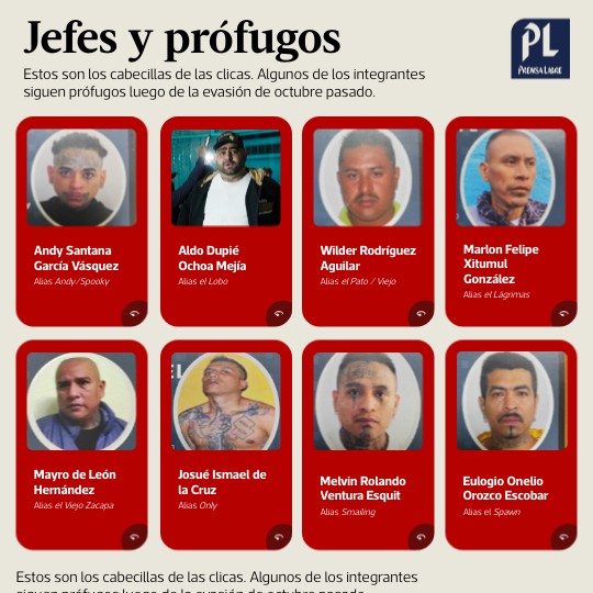 Estos son los cabecillas de las clicas. Algunos de los integrantes siguen prófugos luego de la evasión de octubre pasado.
