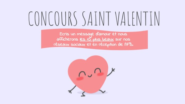 Ecris un message d'amour et nous afficherons les 15 plus beaux sur nos réseaux sociaux et en réception de l'IFB.