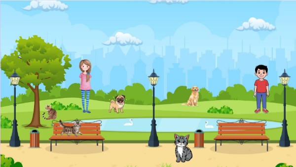 Can you see Alex in the picture? Can you see Anna? Can you see a cat? How many cats? Can you see a dog? How many dogs?