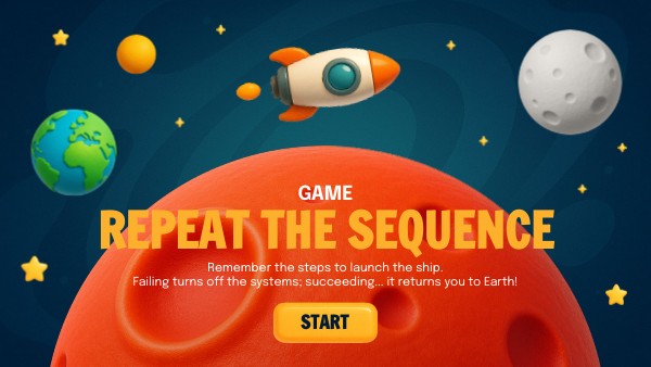 You have landed on an inhospitable planet inhabited by aliens… let's say, not very bright. Your ship has activated the security protocol to prevent anyone from trying to take control. As an intelligent being, only you can reactivate it. Show your ingenuity by correctly repeating the security sequence to turn on the engines… and escape back to Earth!