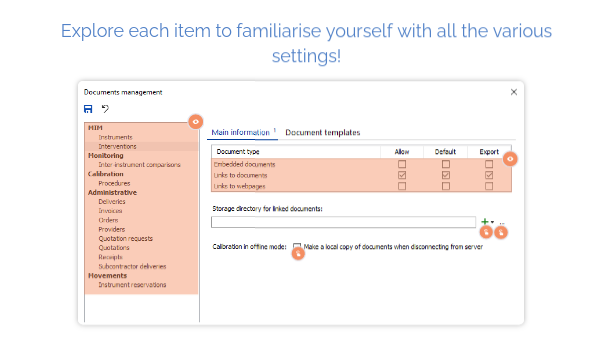 Explore each item to familiarise yourself with all the various settings!