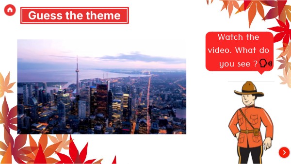 Canada has breathtaking landscapes, such as mountains, waterfalls and big forests. It is a very cold country, with a lot of snow and ice. In Canada, you can see polar bears, beavers, moose or whales. It is an amazing country, with lots of activities to do: you can go skiing, rafting or snowboarding. You can also play hockey or lacrosse. The maple leaf is an important Canadia symbol. It is represented on the flag of the country. It is used to make maple syrup. It is the second biggest country in the world, after Russia. It is in North America. Its capital city is Ottawa. Canadian people speak English or French.