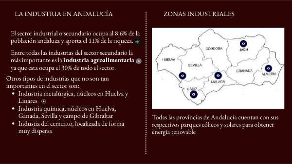 - Industria química, núcleos en Huelva, Ganada, Sevilla y campo de Gibraltar