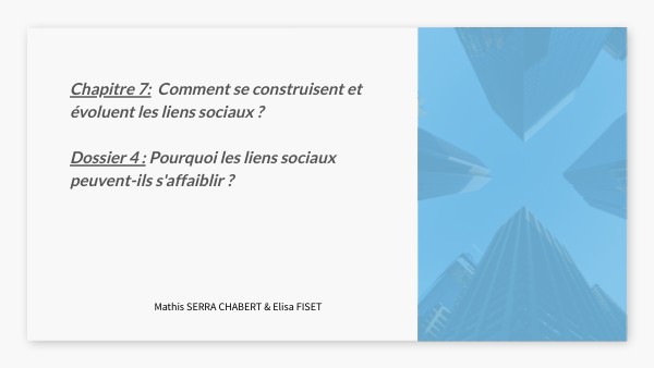 Chapitre 7: Comment se construisent et évoluent les liens sociaux ?Dossier 4 : Pourquoi les liens sociaux peuvent-ils s'affaiblir ?
