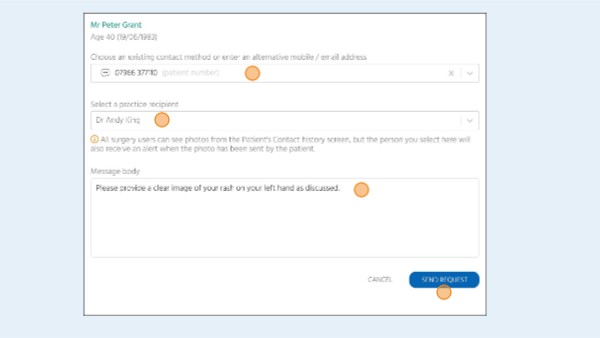 You can change the recipient, for example if you are requesting it for another clinician. The sender of a photo request must nominate the recipient, this will then send an on screen notification to the recipient that a photo request has been completed by the patient.
