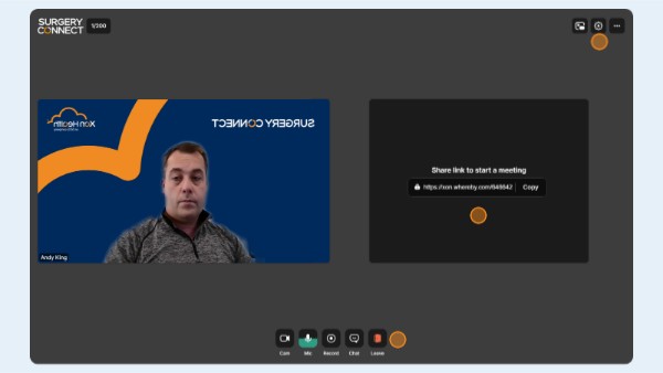 The usual video call controls will be in place:# - Switch on/off your camera - Mute your microphone - Record the session (to your local PC NOT the clinical system) - Send a message on screen (chat) - Leave the meeting.
