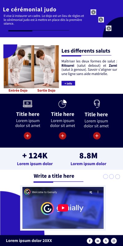 With Genially templates, you can include visual resources to leave your audience in awe. You can also highlight a phrase or specific piece of information that will be etched in your audience's memory, and even embed external content that surprises: videos, photos, audios... Whatever you want!