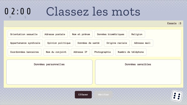 Certaines données ne sont pas classées correctement… mais vous êtes très proche ! L'erreur fait partie de l’apprentissage. Réessayez !