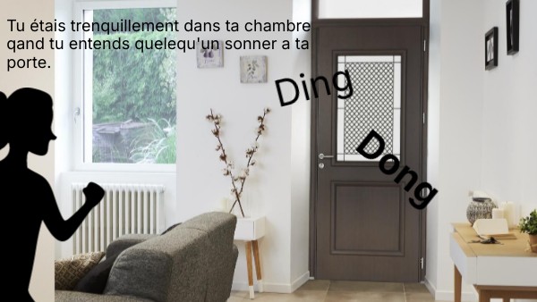 Tu étais trenquillement dans ta chambre qand tu entends quelequ'un sonner a ta porte.