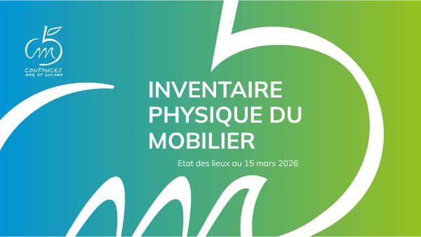 L’inventaire physique porte exclusivement sur le mobilier et les équipements courants des services de la Ville de Coutances et de la CMB. Ne sont pas inclus dans cette campagne : - Le patrimoine historique ou culturel (dons, objets classés, œuvres d’art, collections, etc.) - Le matériel pédagogique - Les poubelles - Les biens situés à l’extérieur (tables de pique-nique, cabanons, bancs sous les préaux ou jeux dans les cours d’école)