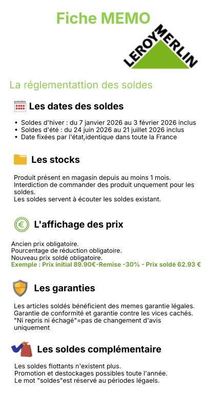 Produit présent en magasin depuis au moins 1 mois. Interdiction de commander des produit unquement pour les soldes. Les soldes servent à écouter les soldes existant.