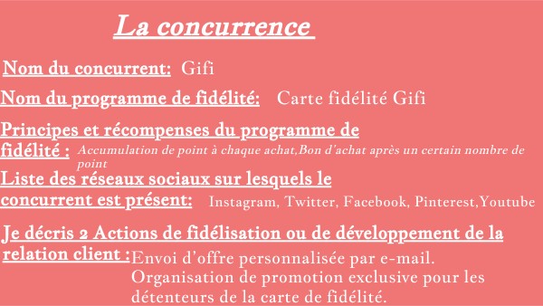 Liste des réseaux sociaux sur lesquels le concurrent est présent: