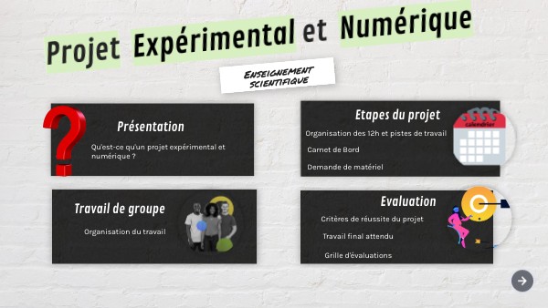 Le projet expérimental et numérique est une séquence d'environ 12 h qui repose sur la pratique d’une démarche scientifique expérimentale. Selon le cas, le projet expérimental et numérique peut revêtir trois dimensions :