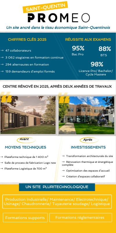 Un acteur fort de la formation aux métiers industriels, des services et de la logistique pour répondre aux enjeux de compétitivité du territoire compiégnois.