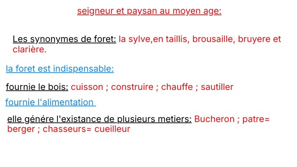 elle génére l'existance de plusieurs metiers: Bucheron ; patre= berger ; chasseurs= cueilleur