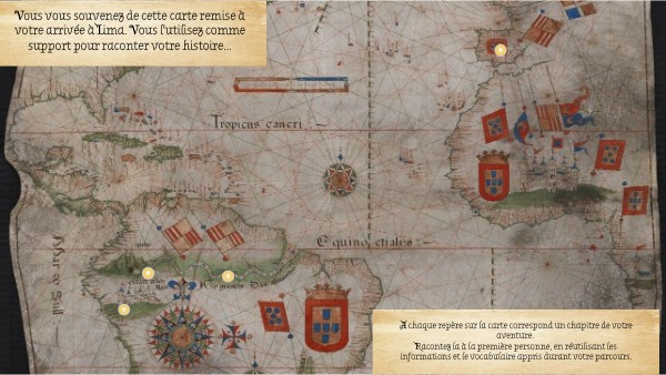 Vous vous souvenez de cette carte remise à votre arrivée à Lima. Vous l'utilisez comme support pour raconter votre histoire...