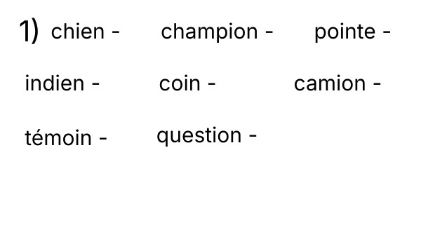 poing – musicien – passion – groin – lion – besoin – gardien – goinfre - rejoindre
